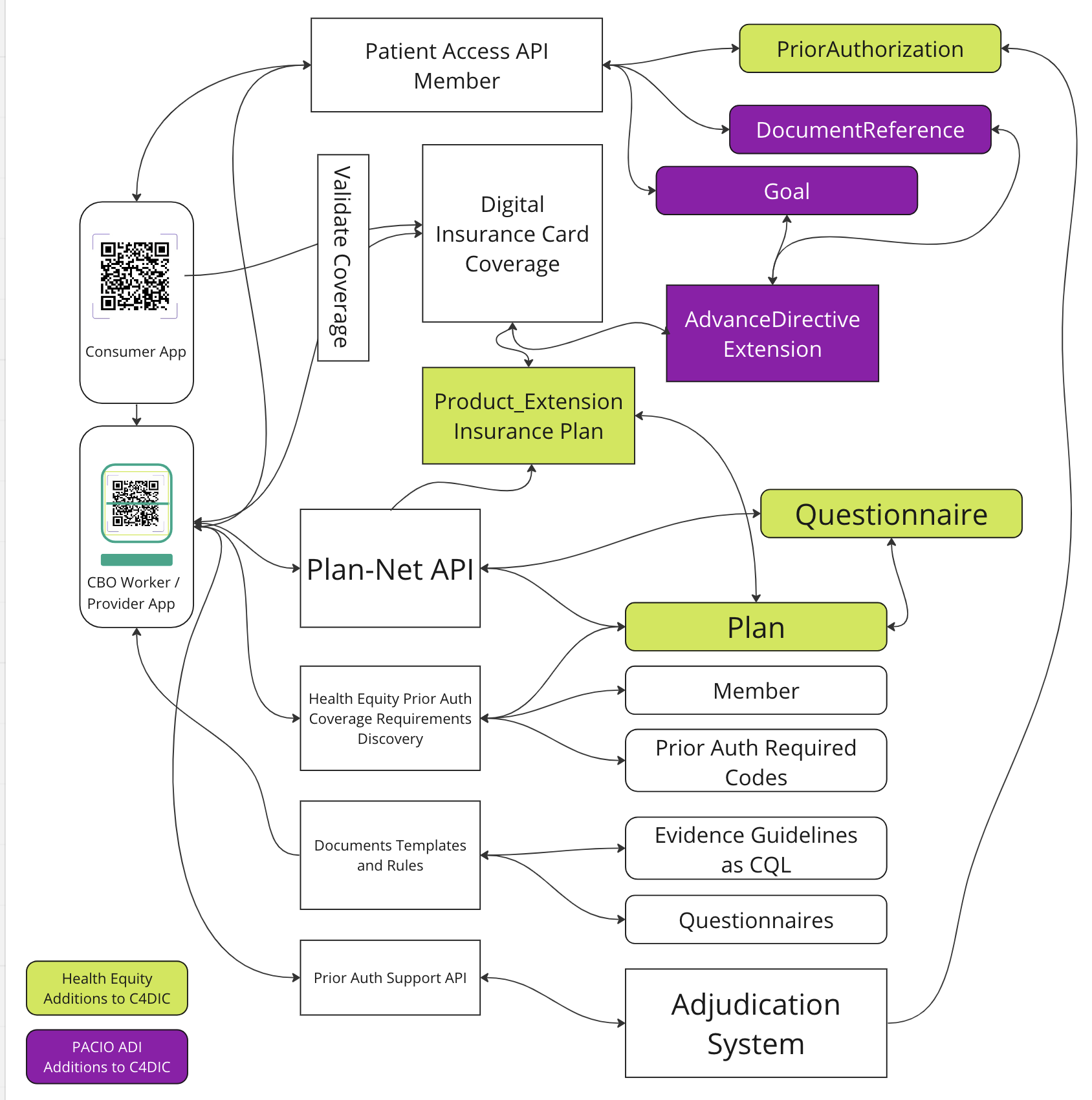 The Digital Insurance Card provides the ability to create a QR code that can be scanned to link back to a Health Plan Member’s coverage, confirming valid coverage. This capability can also provide a linkage to a member’s Advance Directive instructions and wishes. The QR Code can be integrated into a smartphone wallet or can be printed, or included on a membership card. The use of a smartphone is not a requirement in this proposed implementation.